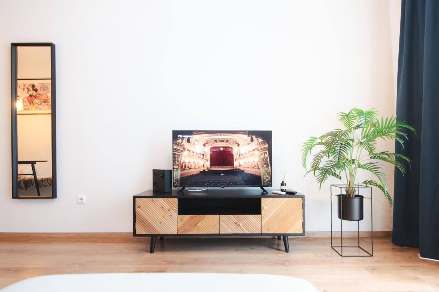 Deluxe Apartment. This apartment comprises 1 living room, 1 separate bedroom and 1 bathroom with a bath and free toiletries. The well-equipped kitchen has a stovetop, a refrigerator, kitchenware and a microwave. This apartment is air-conditioned and features a seating area with a flat-screen TV, a washing machine, a tea and coffee maker, a dining area, as well as a wardrobe. The unit offers 2 beds.