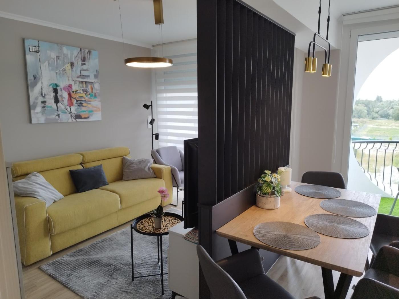 The apartment with a balcony and lake views features 1 bedroom, a living room, a flat-screen TV, an equipped kitchen with a dishwasher and a microwave, and 1 bathroom with a shower. Towels and bed linen are featured in the apartment. This apartment is non-smoking and soundproof.