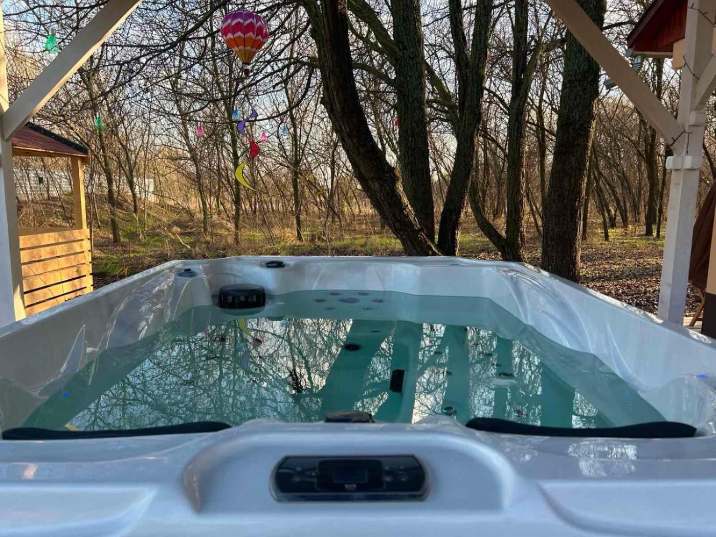 Boasting a hot tub, Varázslakos Tanya is situated in Soltvadkert. This beachfront property offers access to free WiFi and free private parking. The apartment has an outdoor fireplace and a hot tub.